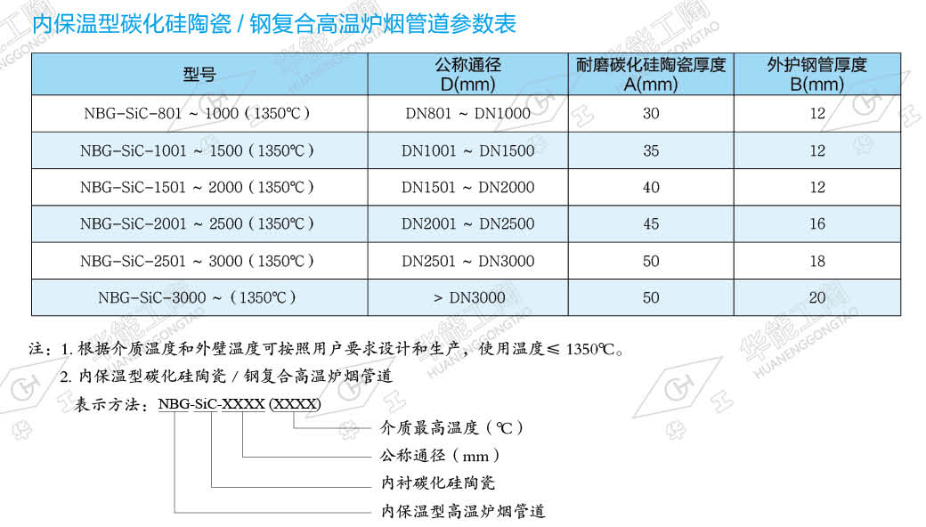 内保温型碳化硅陶瓷/钢复合高温炉烟管道