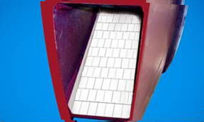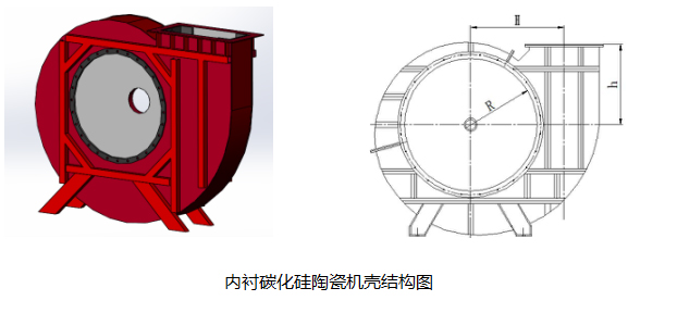 风机机壳 由于电厂烟气中含有大量烟尘,对风机机壳冲刷严重,我公司采用碳化硅耐磨陶瓷对机壳冲刷严重部位进行保护,可以保证风机不产生磨损泄漏,提高机壳使用寿命。